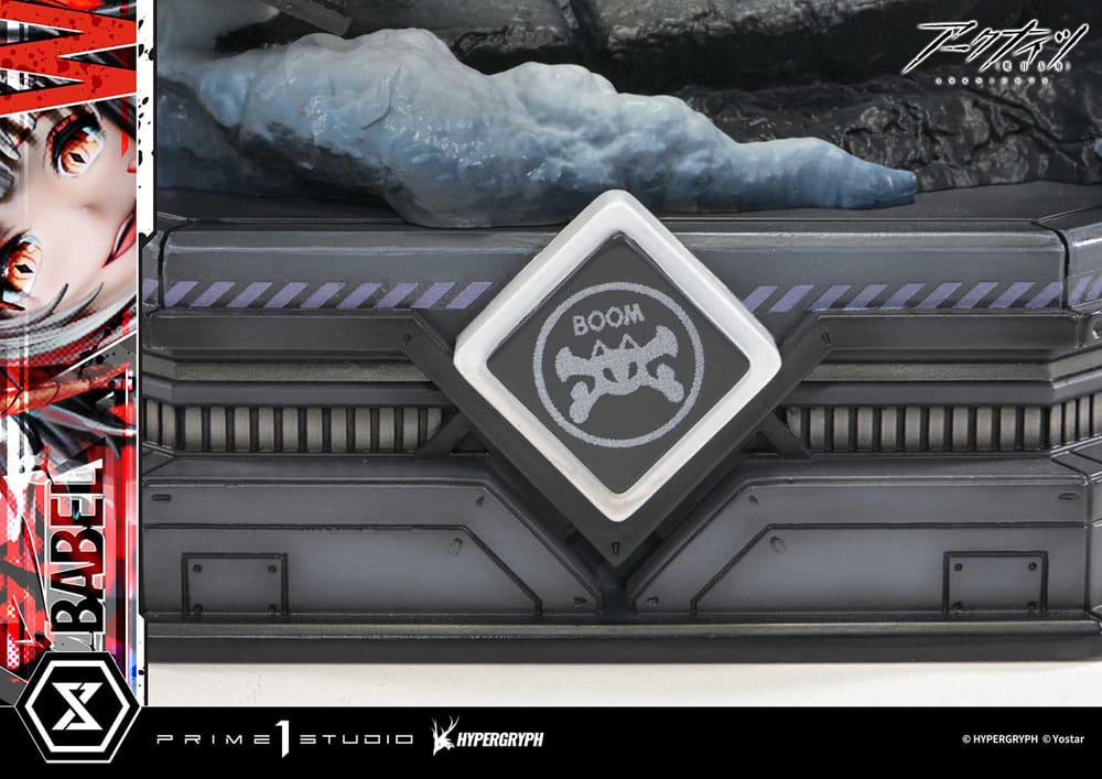The explosive backdrop has been artfully arranged to deliver maximum impact while remaining ideal for display. Layers of textured and gradated smoke recreate the swelling air and lingering shock of the blast, while the stylized steel beams add a bold visual rhythm. Grenades and bombs reminiscent of her tactical arsenal complete the composition, forming a vivid image of destruction frozen in motion.