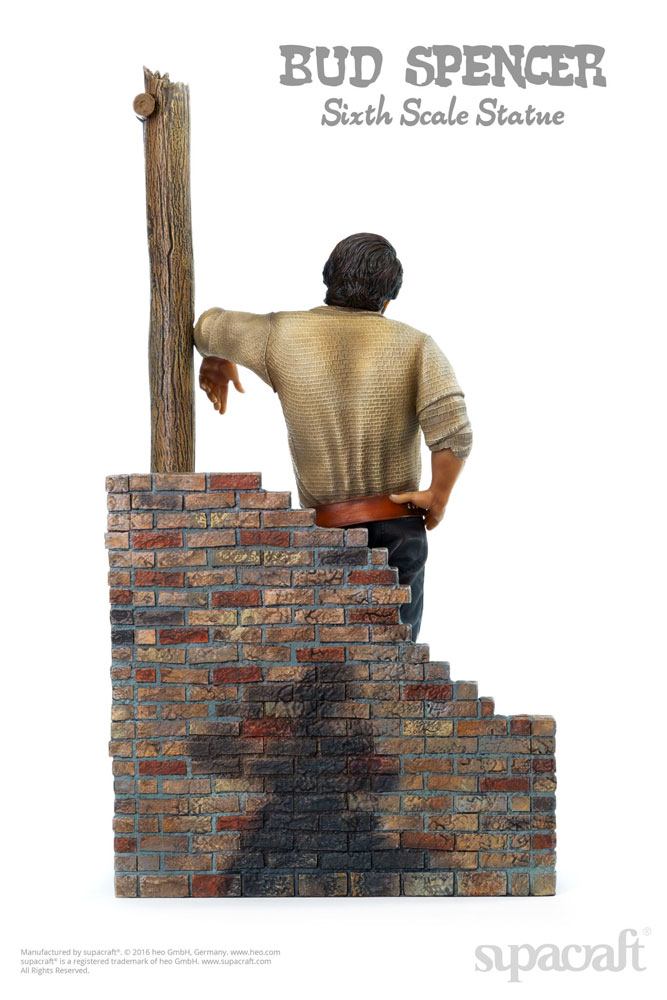 Olympic swimmer, composer, pilot, inventor and European cult cinema icon. While these are some (and not even all) steps in the incredible life and works of the great Bud Spencer, many of us simply see him as our childhood hero! Very few actors have a more dedicated cult following than the Italian screen legend.Fans and collectors are desperately waiting for many years now for some high-end Bud Spencer collectibles and the wait is finally over! supacraft® proudly presents the world's first officially licensed Bud Spencer 1/6 scale resin statue. It shows him in his early days of acting in several Spaghetti Western movies which brought so much fun to this genre.The statue is true to Bud's appearance in those days and bursting with details. The head sculpt features an incredible likeness of Bud Spencer and also his build, the relaxed pose and facial expression and the clothes he wears - all look like they were cut right out of the silver screen. Many small details, like the dusty look of his clothes, the sweat stain on his back, the dirt under his fingernails, his belt , the sheriff's star, his spurs and even the spot where his shirt is untucked, bring joy to any collector's heart. The removable gun fits perfectly inside the holster. The beautifully crafted diorama base gives everything the perfect final touch.We at supacraft® had the honour and privilege to work with Mr. Spencer directly to make this masterpiece happen! The Maestro himself approved the final prototype of this collectible in early 2016, before he sadly passed away later that year. We will always remember him as the kind, humble, larger than life person he was and we are happy to be able to honour his legacy with such a wonderful piece of art.The statue is limited to 1.500 pieces and will include a certificate of authenticity and a medal of authenticity, which is housed in a case with velour interior.Features:- 1/6-scale resin statue- Western-style diorama base- Limited edition of 1.500 pieces- Certificate and medal of authenticity- Full-color cardboard packaging with foam interiorProduct specifications:Height: 44 cm (height of figure without base: 32 cm)Length: 20 cmWidth: 22 cmWeight: 3965 g