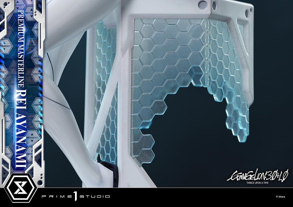 From ""EVANGELION: 3.0+1.0 THRICE UPON A TIME"", which brought more than a quarter-century of storytelling to a close, Rei Ayanami is realized as a Premium Masterline statue.