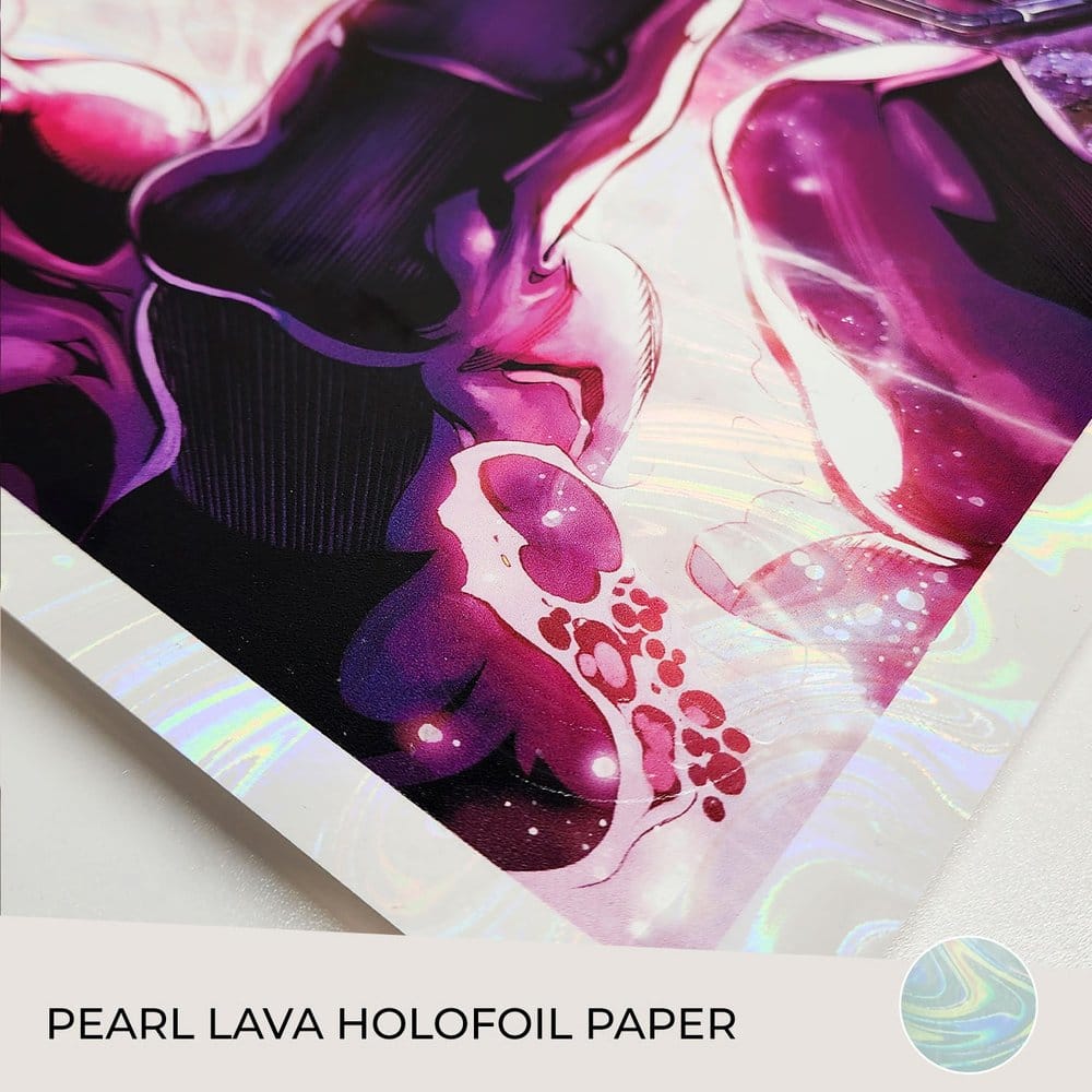 - 41 x 61 cm digital lithograph on pearl lava holofoil paper, image dimensions 38 x 58 cm