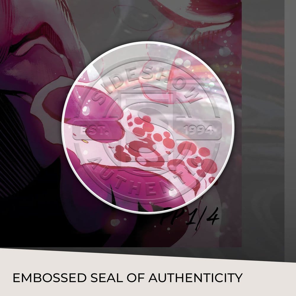 Originally created as a variant cover for Death of the Silver Surfer #3 (2025), written by Greg Pak for Marvel, this comic book artwork is available to fans in an unframed or custom framed format. Each Death of the Silver Surfer Fine Art Print is printed on pearl lava holofoil paper and features an embossed Sideshow Seal of Authenticity as a part of the limited edition of 150 pieces.