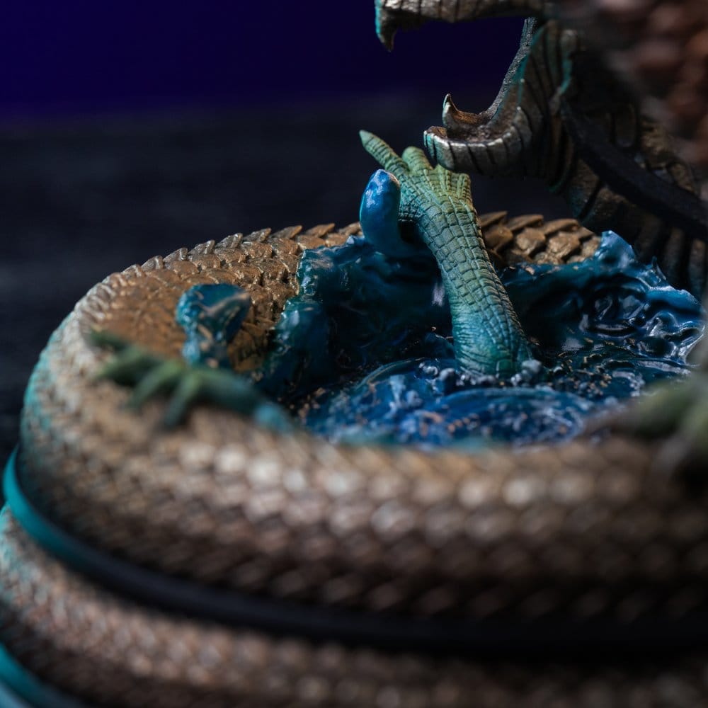 This officially licensed statue from "Masters of the Universe" is made of resin. The 1/10 scale statue measures approx. 20,4 x 13,4 x 20 cm (8.03" x 5.28" x 7.87"). Kobra Khan? Kobra Khan is one of the most cunning and dangerous villains from Masters of the Universe. A loyal servant of Skeletor, he belongs to the reptilian Snake Men and is known for his unique ability to spray a paralyzing mist that incapacitates his enemies. Stealthy, deceptive, and ruthless, Kobra Khan relies on ambush tactics and хит-and-run attacks to outmaneuver even the strongest heroes of Eternia. About the product: Produced by Iron Studios, the Kobra Khan – Masters of the Universe – Art Scale 1/10 statue brings this classic villain to life in a dynamic and menacing pose. Showcasing his reptilian features and battle-ready stance, the piece perfectly captures his stealthy nature and lethal abilities. The statue is made with high-quality materials such as Polystone and may contain parts in resin, ABS, PVC, metal, and fabric. Each piece is hand-painted, ensuring a unique and exclusive artistic finish that will stand out in any Masters of the Universe collection. Special Feature: 2 heads