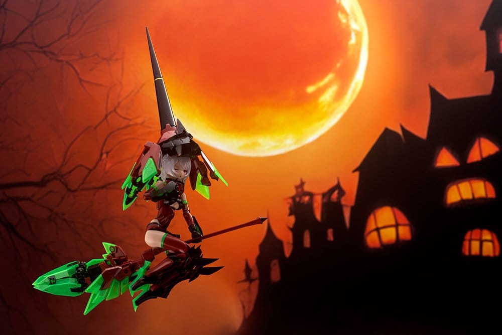 BULLET KNIGHTS EXORCIST HELL BLAZE is the latest model to join Megami Device, a plastic model kit series combining Bishoujo-style beauties and heavy-duty weapons and armor!_x000D_ _x000D_ “Once again, a proposal to don an M.S.G”_x000D_ _x000D_ Based on BULLET KNIGHTS EXORCIST, this kit combines Battle Lance, Exceed Binder2, and Expansion Armor Type E from the M.S.G series in new colors, allowing for even more diverse customization options. The kit is recolored to the HELL BLAZE color scheme for a completely new look!_x000D_ The design is by Yasutaka Isegawa, and the kit includes three new face parts!_x000D_ _x000D_ Model Specifications:_x000D_ - Three M.S.G kits matching the dark red color scheme of the base model and weapons are included. The character is transformed into an armed exorcist specialized in adapting to various situations._x000D_ - Pre-painted face parts with three new printed eyes are included._x000D_ - The parts can be configured to display the model in her exorcist-inspired armor in Armed Mode, or without armor in Unarmed Mode._x000D_ - The “machineca” base body boasts an impressive range of flexibility, allowing it to be displayed in a variety of natural poses, such as a weapon at the ready or sitting down._x000D_ - The kit includes a variety of weapons and joint parts which allow for different combat scenes to be recreated._x000D_ - The 3mm connection points on each part and head compatibility parts allow this model to be customized with existing M.S.G, Frame Arms, Frame Arms Girl, Hexa Gear, Sousai Shojo Teien, Arcanadea, and Megalomaria series parts._x000D_ - Includes decals for the eyes and other markings._x000D_ - A special base is included._x000D_ _x000D_ What is “Megami Device?”_x000D_ Kotobukiya’s Megami Device series is a line of 14 cm (5½”) plastic model kits that come with a range of weapons and equipment that allow you to enjoy building and customizing your own Megami Device to use in robot battles._x000D_ Each character has a main body, or “machineca,” designed by Masaki Apsy, while the models’ unique armor and mechanics are designed in collaboration with a variety of guest illustrators. The kits come with multi-colored parts and face parts pre-printed with tampography, making them easy to assemble with no paint required. The kits are equipped with 3mm joints, making them compatible with all of the weapons in the Megami Device line as well as Kotobukiya’s other plastic model kit series!
