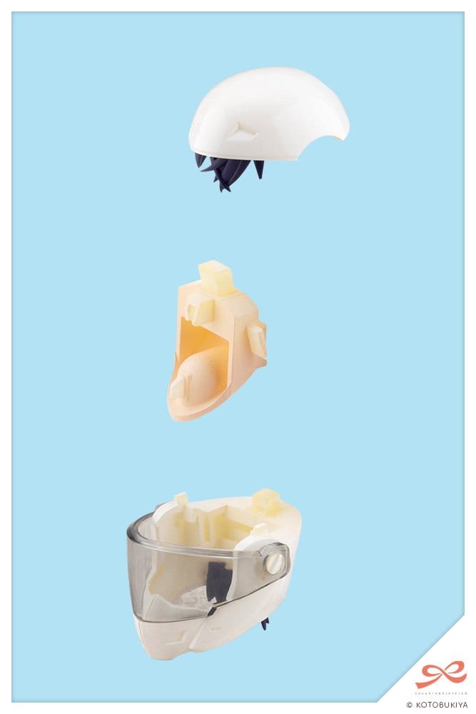 An essential option for riders, the helmet features a clear visor that can be opened and closed. The interior is fully sculpted, including Rui's bangs and hair behind her ears.